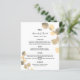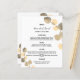 Anpassa och lägg till namn, datum och bröllop-menyn. Vit bakgrund, dekorerad med gyllene eucalyptus sprigs.