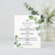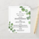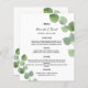 Anpassa och lägg till namn, datum och bröllop-menyn. Vit bakgrund, dekorerad med eukalyptus greenery, spriggar.