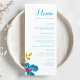 Lägg till en levande beröring till din bröllopsmottagning med vår elegant-menyn för vildblommans vattenfärg blommigt bröllop. Den här menyn har en vacker design med grönt, blå och röd blommigt och ger dig ett nytt och konstnärligt inslag till dina bord-inställningar. Med mallen anpassade kan du enkelt visa menyalternativen i bröllop, skapa en personlig och polerat utseende. Perfekt för par som vill blanda stil och funktioner, den här menyn förbättrar din dekoration samtidigt som du ser till att dina gäster får en sömlös matupplevelse.