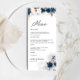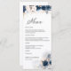 Bröllop Menu för marinblått och Dusty Ro Blommigt Meny