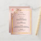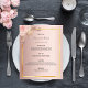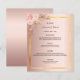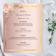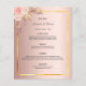 Ett elegant bohemian boho stil bröllop-menykort. Anpassa och lägg till namn, datum och bröllop-menyn. En faux guld ram och en chic ro guld faux metallisk tittar bakgrund. Dekoreras med rosa blommigtar och pampasgräs. Bakåt: färgaden ro guld.