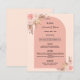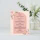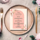 Ett elegant bohemian boho stil bröllop-menykort. Anpassa och lägg till namn, datum och bröllop-menyn. Dekoreras med rosa blommigtar och pampasgräs. Bakåt: ro guld.