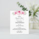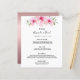 Ett menykort för tropisk elegant bröllop. Rosa blommor, blommigtar hibiscus som dekoration. På framsidan: vit bakgrund. Mallar för namn, datum och bröllop-menyn. Svart färgad brev. Baksida: Ro guld, dammig ro faux metallisk tittar bakgrund.