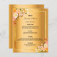 Ett elegant bohemian boho stil bröllop-menykort. Rosa guldlush, vattenfärgat ro som dekoration. Mallar för namn, datum och bröllop-menyn. En faux guld ram och en faux guld metallisk bakgrund. Mörk grått färgad brev. Baksida: Faux guld metallisk tittar bakgrund.