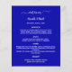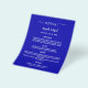 Observera att inbjudan är papper och mycket tunn. Kuvert ingår inte. Om du vill ha mer omfattande inbjudningar (samma design) kan du besöka vår butik. En klassisk bröllop-meny. Royalets blå bakgrund. Vit text. Anpassa och lägg till ditt namn, datum och menyn. Du kan lägga till mer text, foton på baksidan.