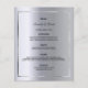 Ett elegant, glamoröst menykort för bröllop eller bröllop. Mallar för namn, datum och bröllop-menyn. En faux silver ram och en chic, glamorös faux silver metallisk tittar bakgrund. Svart färgad brev. Baksida: Faux silver metallisk tittar bakgrund.