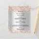 Ett elegant, glamoröst bröllop-menykort. Anpassa och lägg till namn, datum och bröllop-menyn. Faux silver tittar bakgrund, dekorerad med ro guld faux-gnistor.