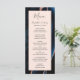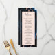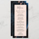 Den här eleganten har den moderna bröllop-menyn en vattenfärgsblå, blå, agate-bakgrund som trimmas med ro guld faux glitter. Texten visas i elegant, grått-handskrift och typsnitt på en rosa. Den agate-designen upprepas på motsatt sida.
