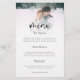 Bröllop-meny för budgetminimalistiskt fotoskript. EN STÖRRE storlek på 5,5" x 8,5" på budgetpris. En elegant med foto längst upp i kant bakom ett graderat färgton lagrar med texten delvis överlagrad ovanpå bilden vid grund. Huvudet finns i ett skript med fet stil och resten av texten kan du enkelt anpassa.
