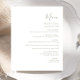 Den här enkla, moderna bröllop-menyn innehåller grönt på vit bakgrund. Ord "Meny" visas i snyggtens handskriftsgrafi. Lägg till parets datum namn och bröllop i skript och kursiv stil, tillsammans med menydetaljer i sans serif-teckensnitt. Bakåt är en solid skuggning av grönt.