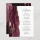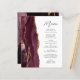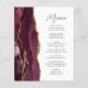 Den moderna menyn bröllop på den lämnat kant i eleganten har en burgundröd vattenfärgad agatdesign som trimmas med faux guld glitter. Anpassadet kombinerar handskriftsskript för kol-grått och sans serif typsnitt på vit bakgrund. Burgundy- och guld-agatkonstruktionen upprepas på motsatt sida.