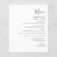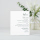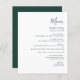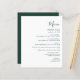 Den här enkla moderna bröllop-menyn har en vit bakgrund som gör att grönten visas i . Ord "Meny" visas i snyggtens handskriftsgrafi. Lägg till parets datum namn och bröllop i skript och kursiv stil, tillsammans med menydetaljer i sans serif-teckensnitt. Den omvända sidan är en matchande skuggning av solid emerald grönt.
