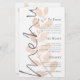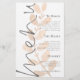 En budgetpris storlek på 5,5 x 8,5 tum på en elegant på 110 lb LINEN lagrar - för en lyxkänsla till underbart värde är detta perfekt för menyer, inbjudningar och program osv. Detta storleka budgetalternativ finns också tillgängligt i andra pappra val. SEMI-GLOSS 110 lb-kortet lagrar har ungefär samma tjocklek som ett vykort, så fungerar också bra för inbjudningar. FELT 100 lbs papper är en färgad, INTE vit, vilket ger en kraftig tryckning. MATTE 80 lbs pappra lagrar är ljust vitt, för skarp utskrift, underbart för dina menyer och program, medan SATIN 80 lbs pappra är tunt och lätt, perfekt för höljen. OBSERVERA ATT ALTERNATIVET ENVELOPES ÄR EN LITEN STÖRRE STORLEK PÅ 6,75 x 9 tum. Den här moderna designen har Menu i elegant set grått-skript som löper upp på den lämnat sidan och resten av texten är i linje med den höger som du enkelt kan anpassa dig till, liksom namn och bröllop-datum på baksidan. Artsy vattencolor-löv i persikor färgläggs i bakgrunden på båda sidor.