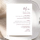 Den här enkla moderna bröllop-menyn har en brinnande text på vit bakgrund. Ord "Meny" visas i snyggtens handskriftsgrafi. Lägg till parets datum namn och bröllop i skript och kursiv stil, tillsammans med menydetaljer i sans serif-teckensnitt. Den omvända sidan är en passande skugga av solid burgundy.