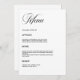 En vit bakgrund. Anpassa och lägg till namn, datum och meny. Svart text.