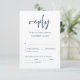 Det här är det vackra Modern Elegant-kalligrafin, OSA (respondentkort), i marint blått teckensnitt, där du kan redigera, ändra färg och formatera det enligt ditt designkrav, med måltider, reserverade sittplatser, nummer som ska finnas och sång som ska begära alternativ.