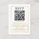 Modern minimalistisk enkel Bröllop OSA-kort med din QR-kod. Guld Ram. Svartvitt med Guld text.