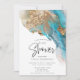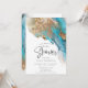 Modern abstrakt inbjudningskort för möhippan med handskriven kalligrafi parad med elegant alkoholkonst i bläck och vattenfärgsdesign i färgnyanser, turkosblått och bronze med faux guld struktur, accentuerad med handskriven stil-kalligrafi. Använda vår enkla att anpassa mallen för att anpassa den med dina detaljer - en fantastisk design © by WhimsicalArtwork™ Detta ingår i en komplett Bröllop Stationery Suite med matchande bröllop, babydusch och andra händelsematerial.