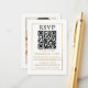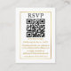 Modern minimalistisk enkel Bröllop OSA-kort med din QR-kod. Guld Ram. Svartvitt med Guld text. Foto bakåt.