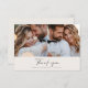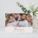 Ett budgetvitt, modernt skript med enkel contemporary med flera foto-bröllop-tackkort. En del av en svit.