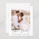 Budgetera Bröllop Tack för att du har ett foto på framsidan och baksidan. Tack-korten innehåller en modern handskriven kursiv skripttypografi som är elegant, enkel och modern till använda efter att du bröllopsdag firande.