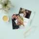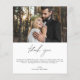 Budgetera Bröllop Handskriftlig tack Du kort som har ett foto på framsidan och baksidan. Tack-korten innehåller en modern, vit- och svart, kursiv skripttypografi som är elegant, enkel och modern till använda efter att du har minimalistisk enkel bröllopsdag firande.