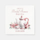 En möhippa av elegant vattenfärg i blommigten te party-napkin som kan vara personlig när bridens datum namn och möhippa anges. Napkin har en tekanna för elegant av vattenfärg, kopp och såser som är inramade av blommor från burgundy och rosa. Utformningen är elegant och modern.