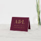 Bröllop Monogram minimalistiskt Burgundy Guld Tack Kort