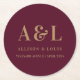 Bröllop Monogram minimalistiskt Burgundy Guld Underlägg Papper Rund