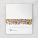 Det vikta namn-kortet visas i vitt baskort med ett fint solros och lavendelfärgat blommigt. Har en lavender färg inuti. Anpassa det här objektet eller köp som det visas.