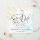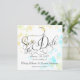 Bröllopsinbjudan Pastel Square färg (tårblått och gult sand) med 'Spara datum' i finare Script Calligraphy - redo om du vill vara personlig med information om ditt bröllop-datum