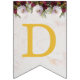 En banderoll av blommigt flaggor som passar för ett bröllop, med anpassadet namn av bruden och brudgummen, förenat av &. Det finns 16 flaggor, tillräckligt för 7 brev och 8 brev namn. Namn är "Danielle & Michael" som standard. Golden cap på en vit marmorbakgrund, med burgundi och vita ponnyer på övre gräns. De vintage peonierna på övre gräns är målade av målaren och botanist Pierre-Joseph Redouté (1759-1840) och är nu offentliggjorda.