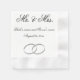 Bröllop napkin med rubriken "Mr & Mrs" Bridens namn och Grooms namn är anpassade med datumet. Vid grund finns en bild av dubbla ring.