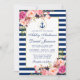 Bröllop Nautical Blue Rand Rosa Blommigt Inbjudan