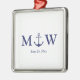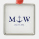 Bröllop nautiskt ankarfartyg, marinblått monogram julgransprydnad metall