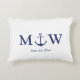 Bröllop nautiskt ankarfartyg, marinblått monogram prydnadskudde
