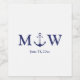Bröllop nautiskt ankarfartyg, marinblått monogram vinflaska etikett