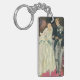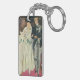 Vintageillustration bröllopsbild med "Just Married" nygifta som går nedför gången efter bröllopsceremonin. Bruden bär en vacker brudklänning och slöja och håller en blomsterbukett med vita calla liljor. Den stilige brudgummen ser elegant ut i sin smoking med frack.