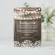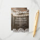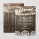 Landsbygd bröllop önskebrunn kort med en rustik trätunna bakgrund, gnistrande sladdljus, en babyandning blomsterdesign, din monogram och en elegant redigerbar önskebrunnsmall.