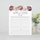 En roligt för en möhippa, "Bröllop Ord A-Z", är ett spel lakan för gästerna att skriva ner så många ord med anknytning till bröllop som de kan tänka av det som börjar med varje brev av alfabetet. Den som har mest ord vinner! Det här spelkortet har vackra, rustiska blommigtar i burgundi, plommon, dammig rosa och elfenben. Den ingår i en möhippa med matchande artiklar som värd för en vacker möhippa.