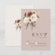 Rustic Dusty Rosa and Grönt Blommigt Bröllop OSA Card. Med det eleganta designade bröllop OSA-kortet, som har en vacker blandning av persikor och oliv grönt blommor på ro-guld, är dina gäster elegant i inbjudan till bröllopsdagen. Det här bröllopet OSA har en vacker blommigt och botanisk design, med rustiska och boho vibes, perfekt för din blommigt eller vildblommiga bröllop. Den minimala och enkla layouten uppmärksammar den lush peach, elegant blommigt inslag som är inställd på en slående bakgrund i ro guld. Med detta bröllop OSA-kort får du en vacker bröllop-omgivning omgiven av bröllop-dekoration i ro och persiko- och krämjblommor. Ett perfekt som tillägg till botaniska eller boho-chic firande.
