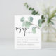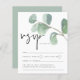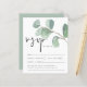 Budget Eucalyptus Script-Bröllop OSA-hölje. Ett budgetmässigt prist mindre än 4,5 x 5,6 tum alternativ. Finns i ett SEMI-GLOSS 110 lb-kort LAGRAR, vilket är standardalternativet (tjockare för inbjudningar), ELLER SATIN AVSLUTAR 80 lb PAPPER LAGRAR (perfekt för bilagor). Kuvert är ett extra som tillval och är något större än det storleka kortet. Huvudet är i en informell handstil i stil och med detaljerna nedan och grönten vörfärgseukalypus löv överst.