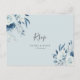 Underbara vattenfärgade blå botaniska blommor på en dammig blå bakgrund. Du kan ändra färg och text så att de stämmer överens med bröllop.