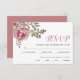 Dusty ro rosa vattenfärgsbuquet av blommor skriver typografiskt bröllop OSA kort med val av måltid. Det visar en vacker bukett av cactus blommor och löv i dammig ro rosa och er text. Ord OSA är i manustypografi. Baksidan är av kraftig damm i ro färg.