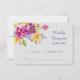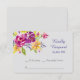 En förbluffande vattenfärgsbukett dekorerar den översta lämnat på det här bröllop-responskortet för söt. Blommorna finns i färg av violett, lila, guld och rosa, med löv av grönt och blå grönt. Till högerna och nedanför finns anpassningsbarnas text i kompletterande grått och matchande blått. Bilder och text placeras på en mjuk ljusbakgrund av grått för att komplettera färg. Kortets baksida är samma fasta grått. Klassen och lämplig för bröllop under alla säsonger, särskilt vår, sommar och fall.