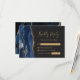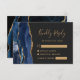 Det moderna kanten i denna elegant, som är lämnat i handen, har ett marint blått vattenfärgsagat gräns som trimmas med faux guld glitter. Rubriken "Kinely Reply" visas i handskriftsskript, med anpassade text nedanför i guld färgad-mönstertypsnitt på en mörk-grått-bakgrund. Den omvända sidan har en matchande marin blå och guld-agate-design.