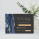 Det moderna kanten i denna elegant, som är lämnat i handen, har ett marint blått vattenfärgsagat gräns som trimmas med faux guld glitter. Rubriken "Kinely Reply" visas i handskriftsskript, med anpassade text nedanför i guld färgad-mönstertypsnitt på en mörk-grått-bakgrund. Den omvända sidan har en matchande marin blå och guld-agate-design.