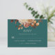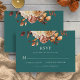 Teal Fall Blommigt Bröllop OSA Card. Den här eleganten och den orustiska bröllopet OSA har handmålade vattenfärger, bränd orange och terracotta löv, kräm och beige dahlias, och vacker perfekt av rost-färgad ro för ett fall eller höst bröllop!