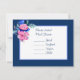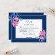OSA kort med söt rosa och blåa blommor med blått teckensnitt. Tema elegant blommigt bröllop.