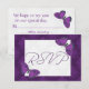 OSA kort från lilan av Butterfly Brocade Collection for Bröllop. Det kommer att finnas fyra andra färgrutor med jewelton tillgängliga, pall, garnet, koppar och en underbar grönt. Bakgrunden är en invecklad brockdesign, den är inte upphöjd, den kommer att tryckas platt. Smöglarna har ett utseende av nedfläckad glas och som kloka höjs inte. Både färg och det vita textavsnittet finns i mönster. Det finns även objekt som porto, bordsnumren, bord ställe, tackkort, Spara datum, Mottagning, spara datumkort och andra matchande produkter.